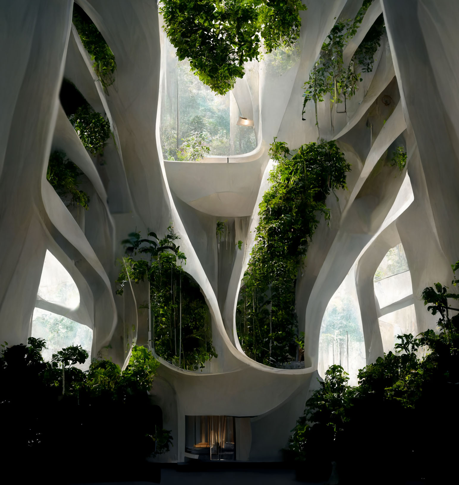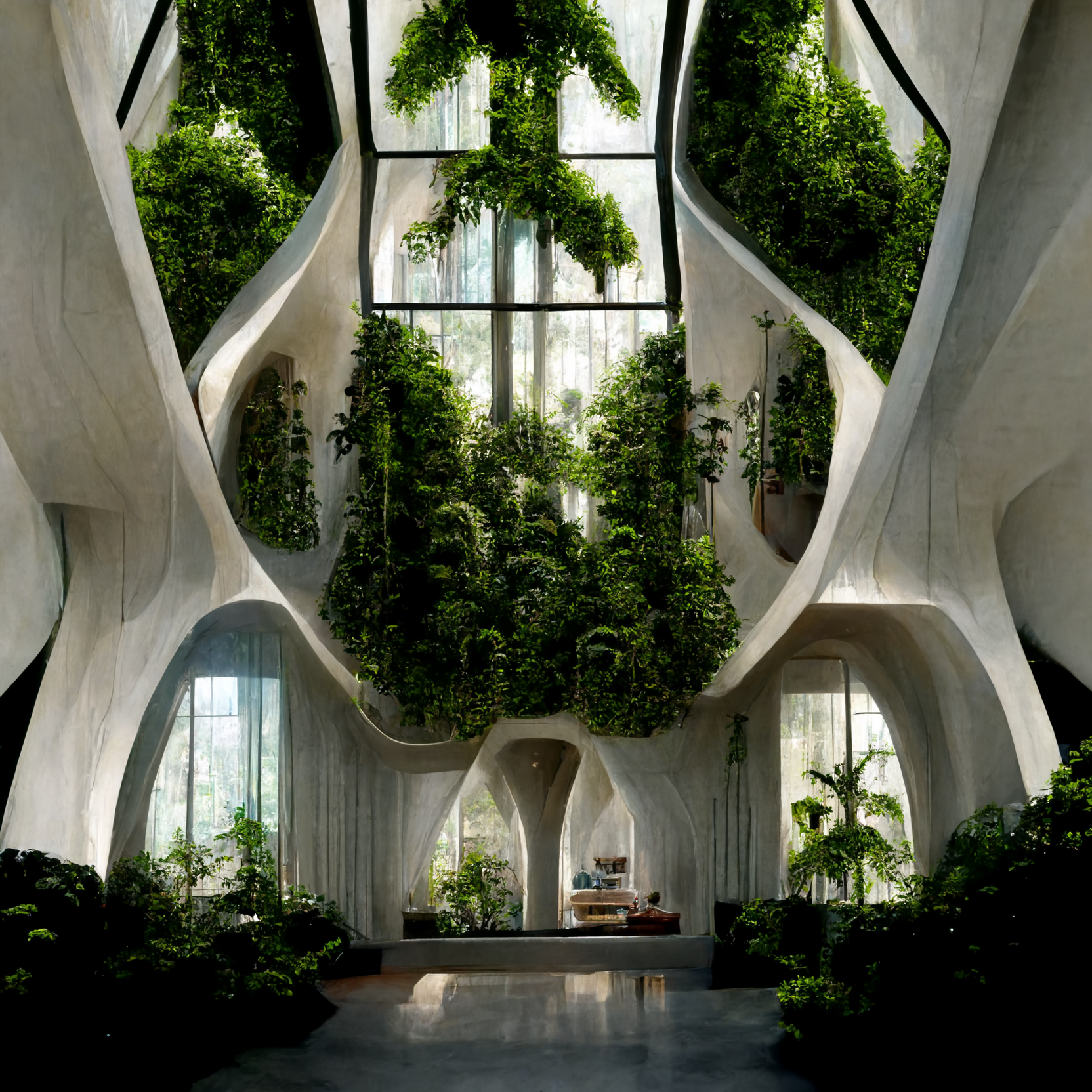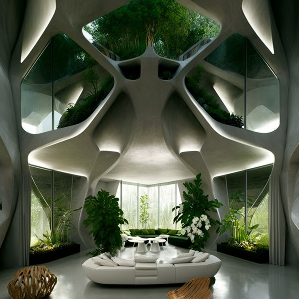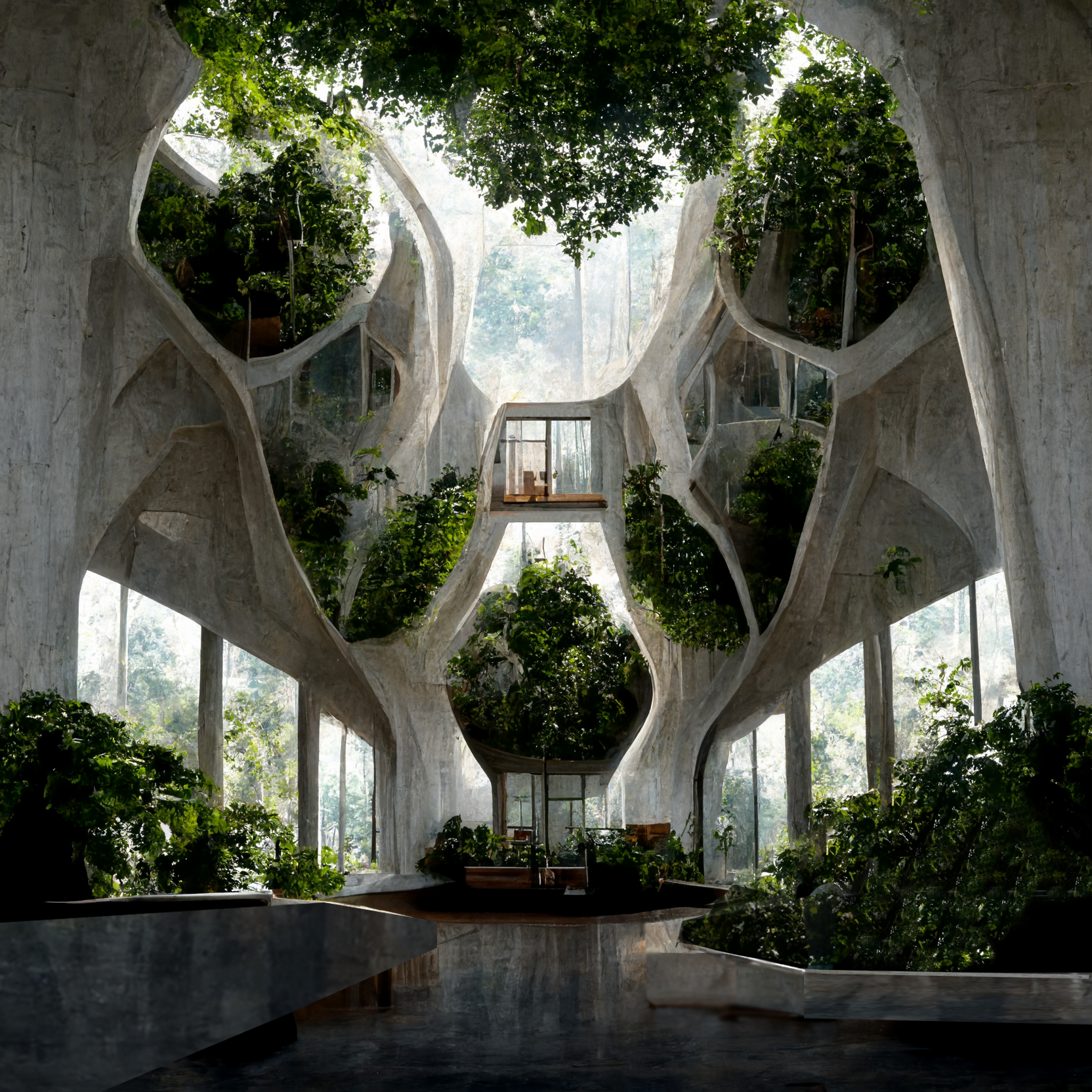The sketches embark on an architectural exploration of residential buildings, leveraging the capabilities of Midjourney AI. This endeavor seeks to reconceptualize the application of biomaterials such as Mycelium (a special blend of mushroom roots and crop waste, that could grow and self-assemble in 3D-printed PLA molds), transforming it, from a mere structural element, to a multifaceted platform capable of sustaining food gardens. The initiative aspires to craft an integrated ecosystem, intertwining built environments with sustainable agricultural practices to forge a symbiotic relationship between structure and nature.